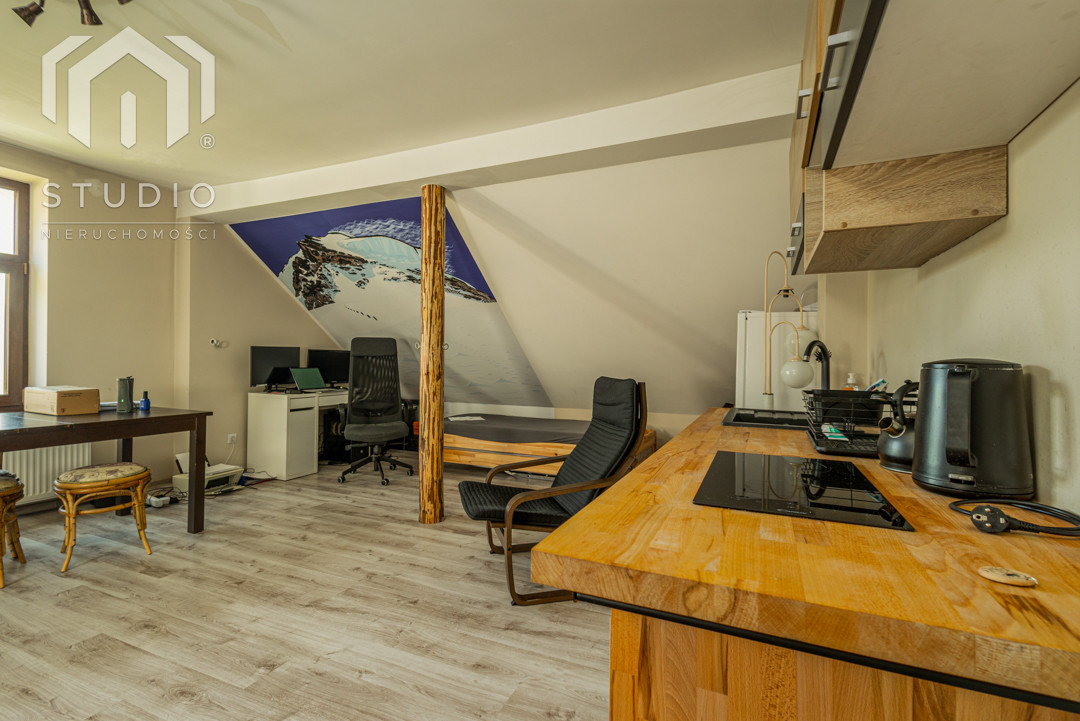 - pokój z aneksem oraz przestrzenią biurową do pracy