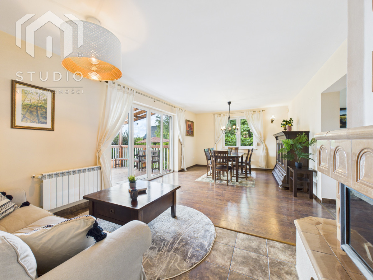 - elegancki salon z kominkiem i wyjściem na taras - serce domu, idealne na wspólnie spędzane chwile