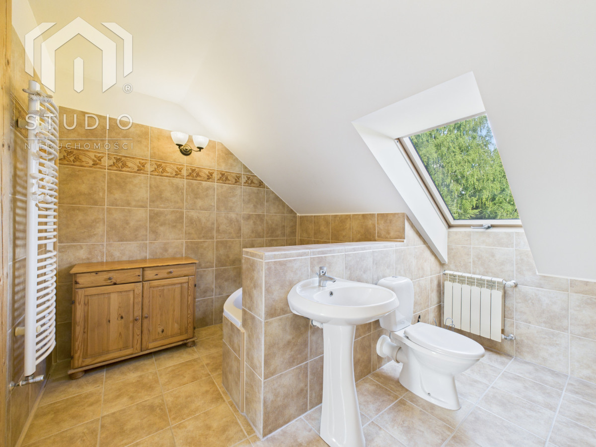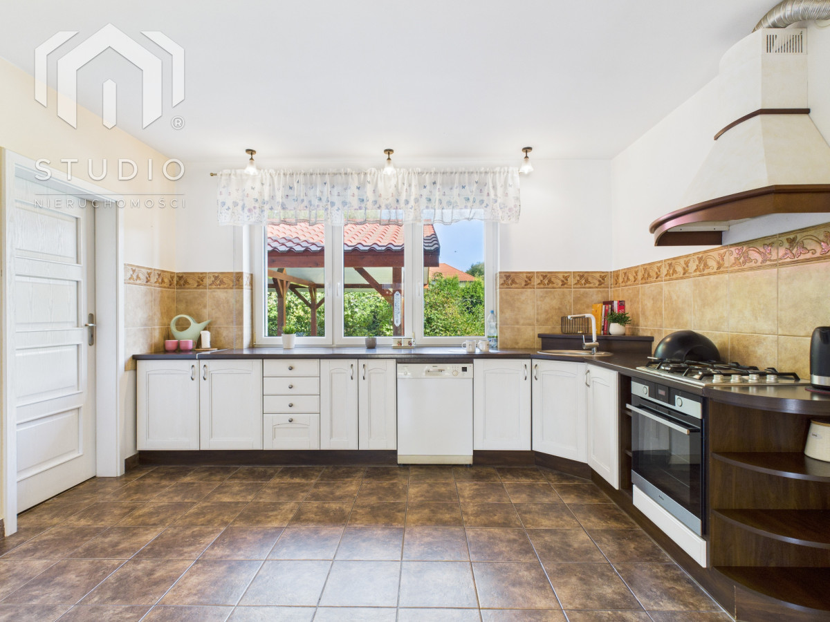 Dom wyposażony jest w instalację alarmową oraz panele fotowoltaiczne.