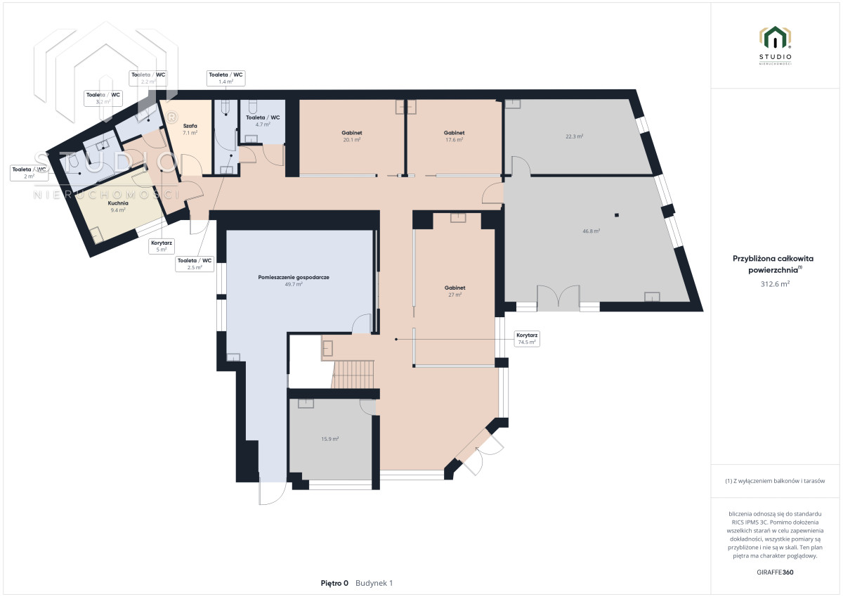 Części wspólne to: WC dla niepełnosprawnych, dodatkowe WC, część socjalna z kuchnią, szatnia