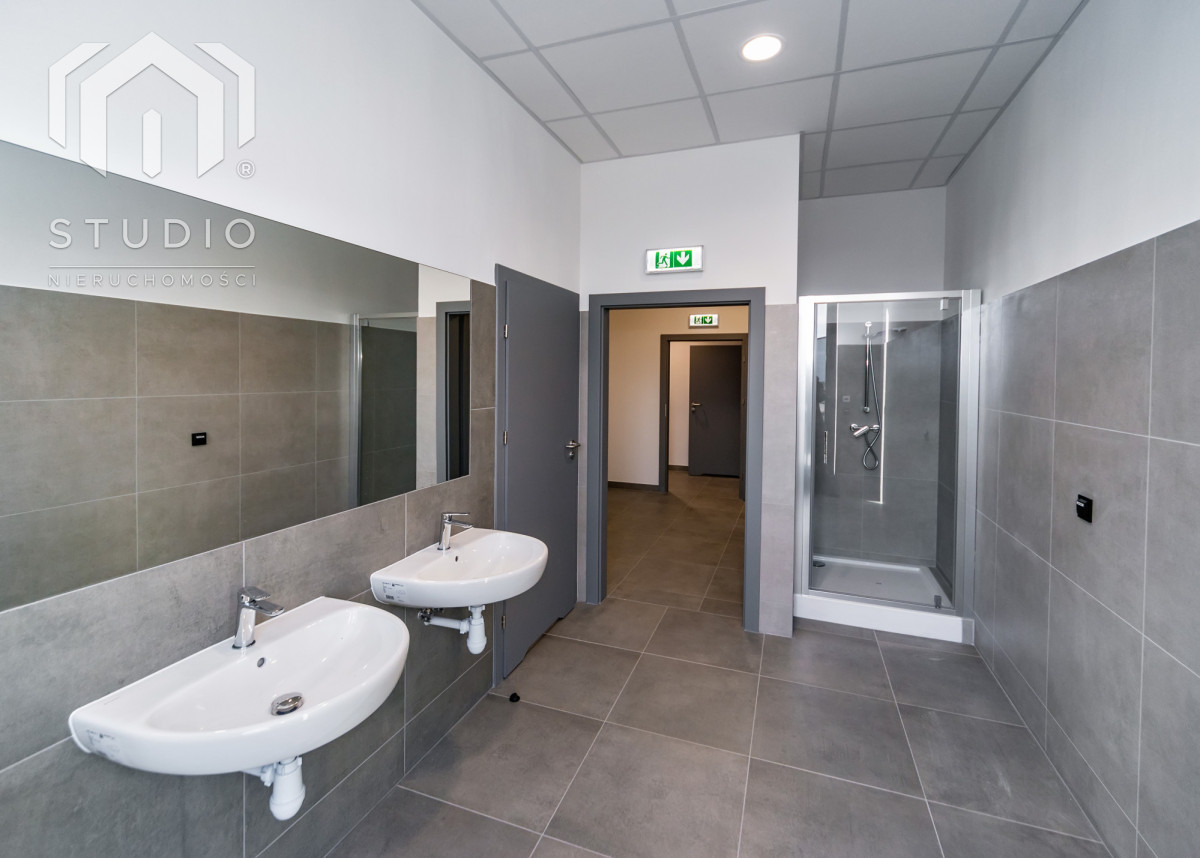 komfortowa część biurowo-socjalna wykończona pod klucz, gotowa do rozpoczęcia działalności po umeblowaniu.