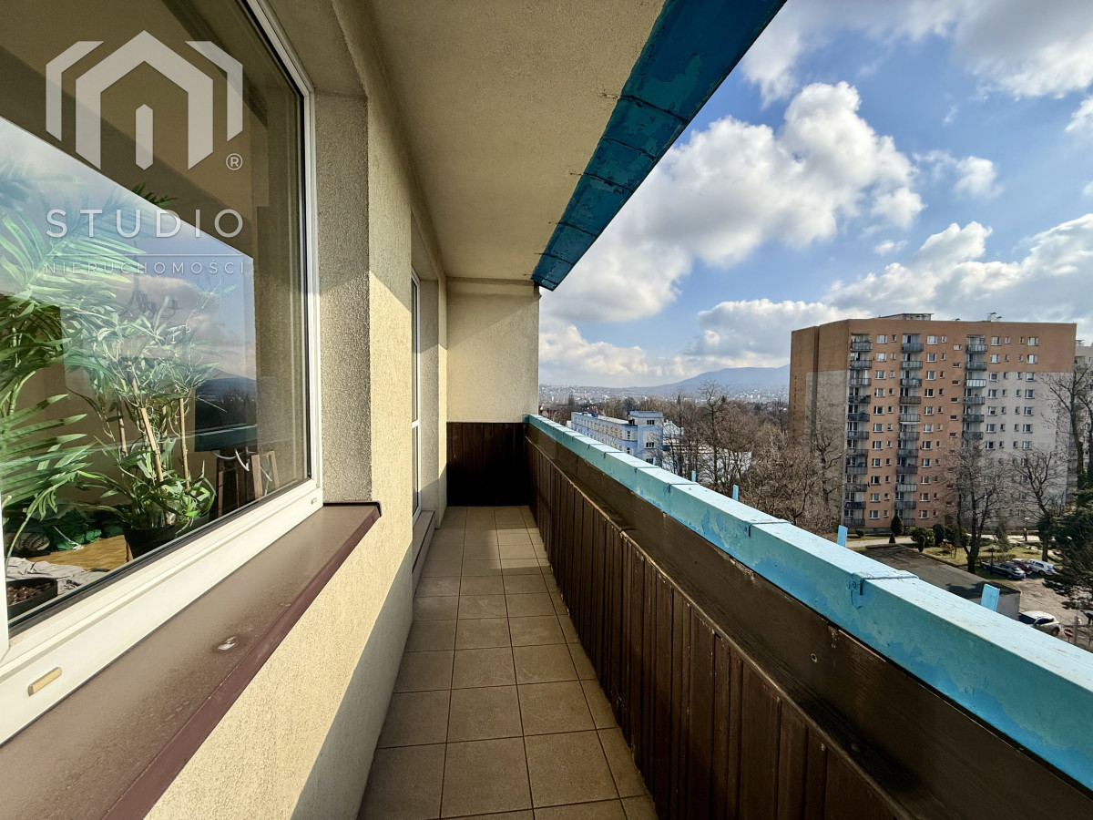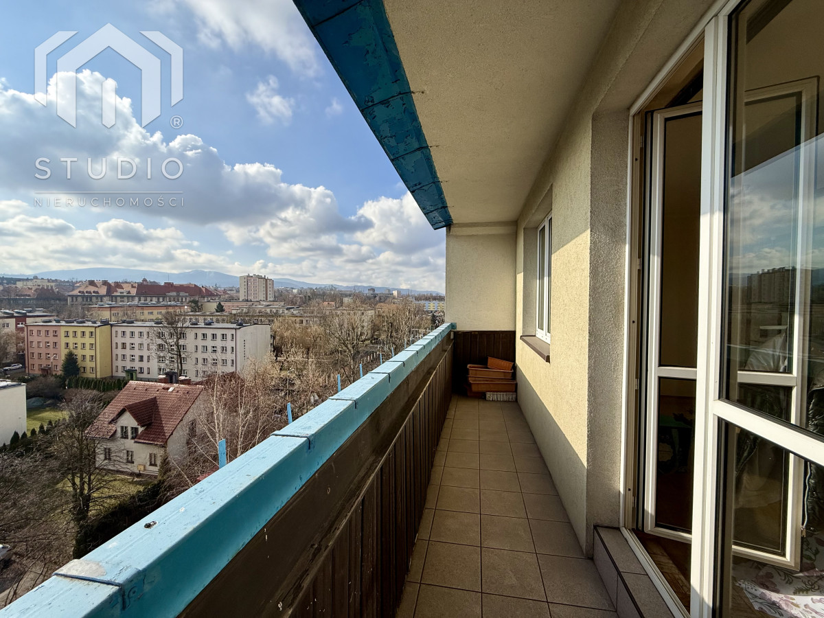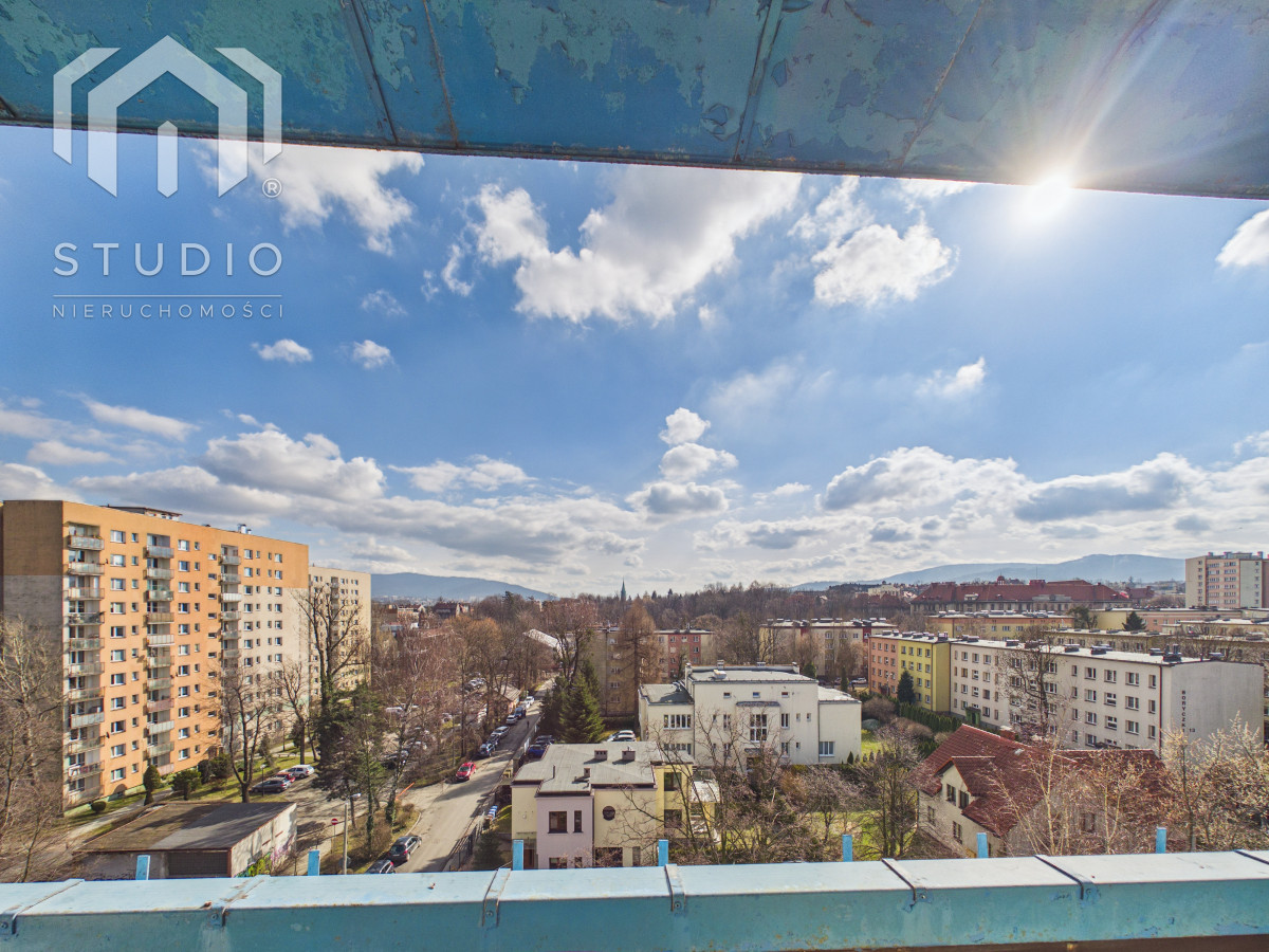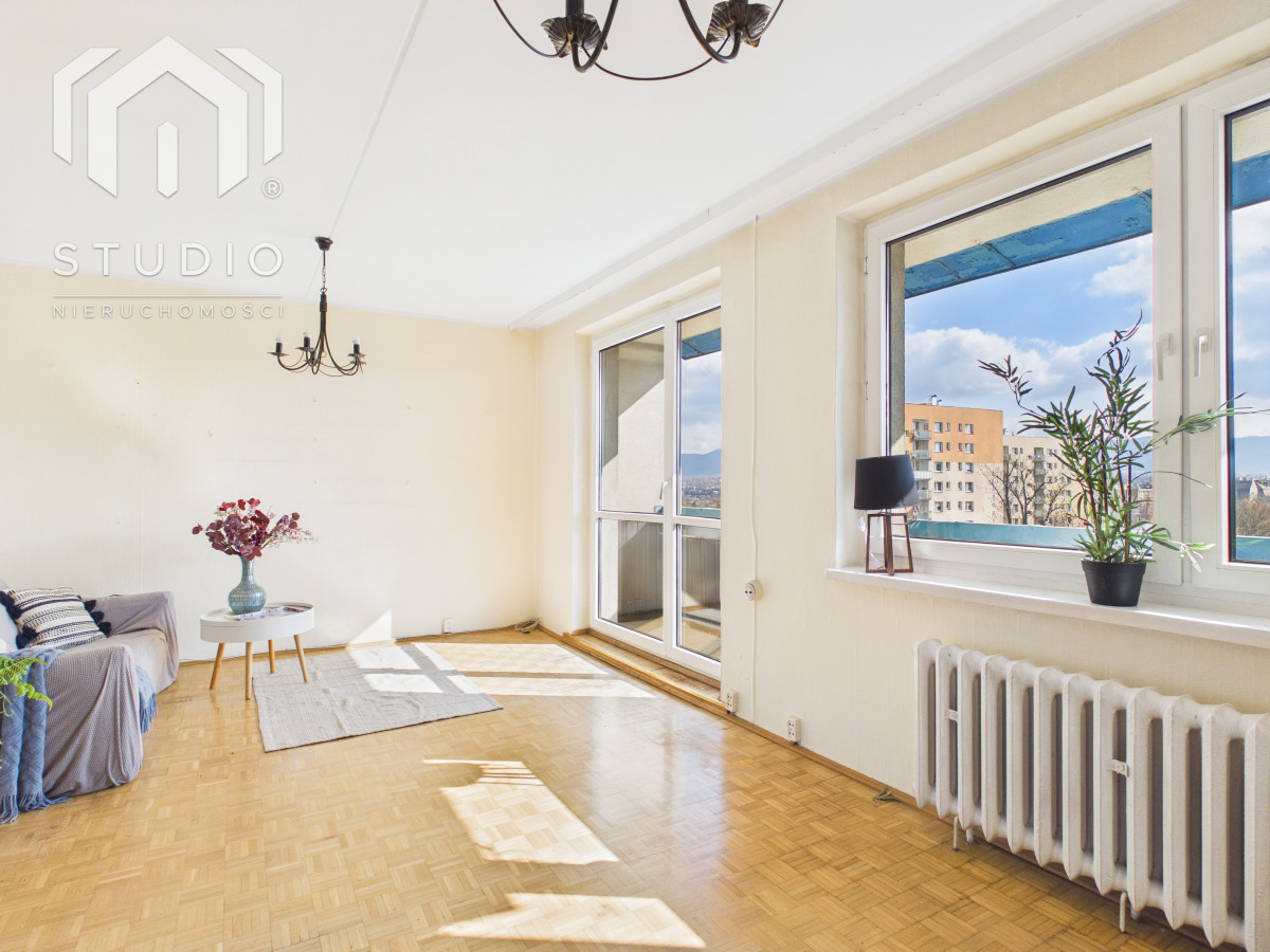 Lokal o powierzchni ok. 69 m² położony jest na siódmym piętrze 10-piętrowego budynku z windą. Mieszkanie wymaga remontu lub odświeżenia, co daje nowemu właścicielowi możliwość aranżacji wnętrza według własnych potrzeb. Okna PCV z ekspozycją północ-południe zapewniają bardzo dobre doświetlenie - mieszkanie jest jasne i słoneczne przez cały dzień. Z dużego balkonu rozpościera się piękny, panoramiczny widok na miasto oraz pasmo gór, który zachwyca o każdej porze dnia