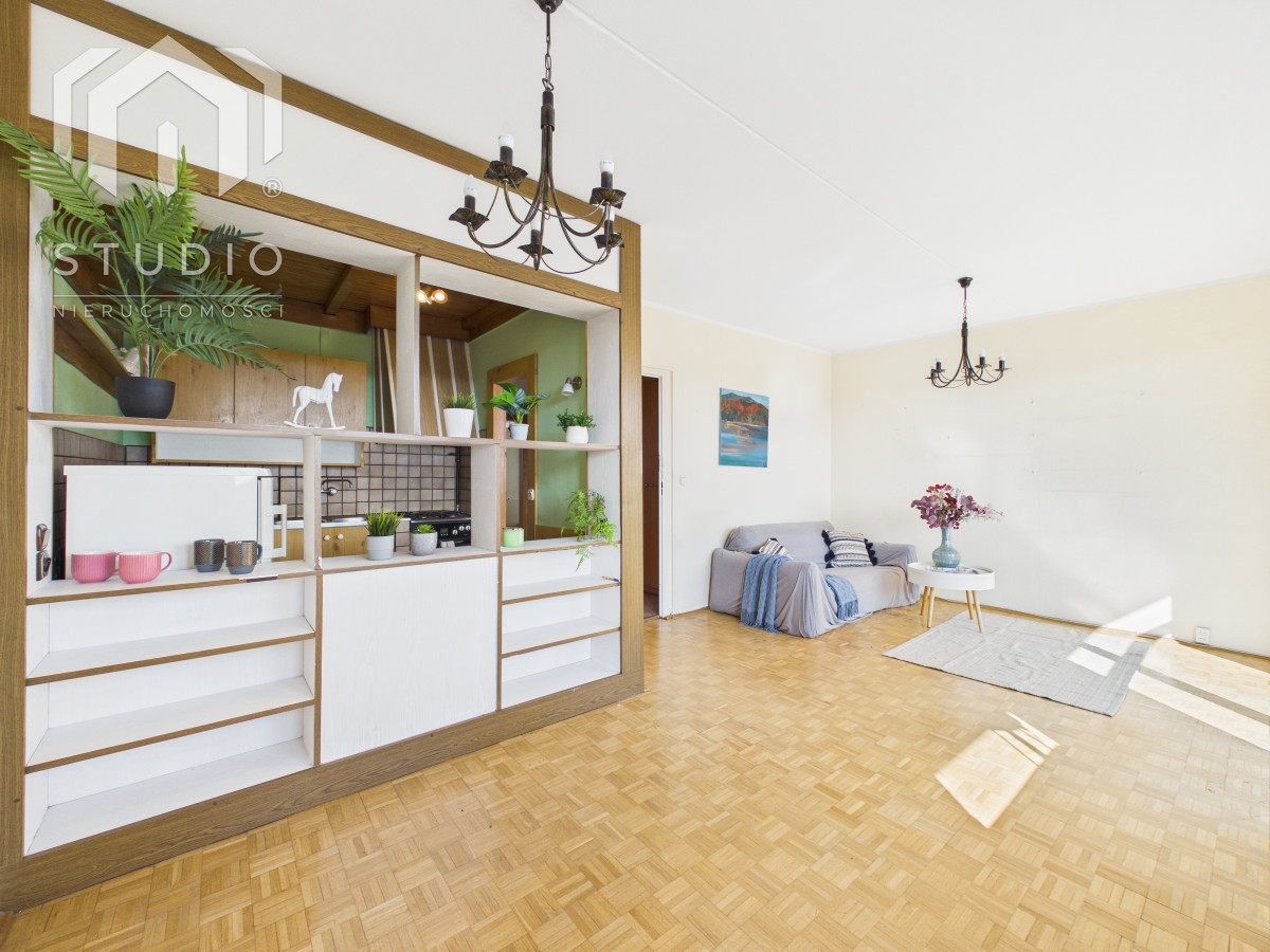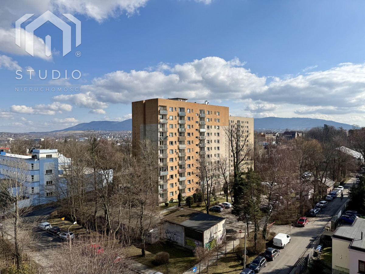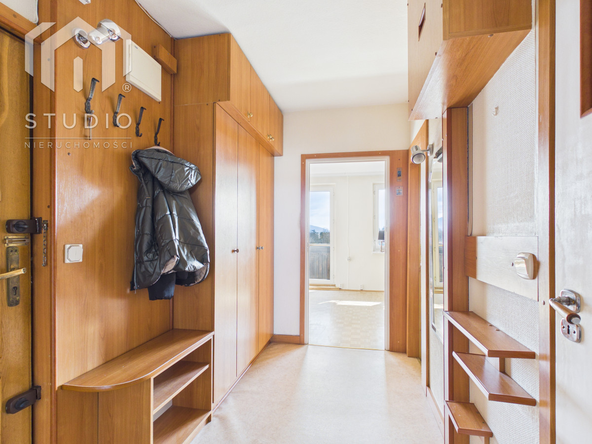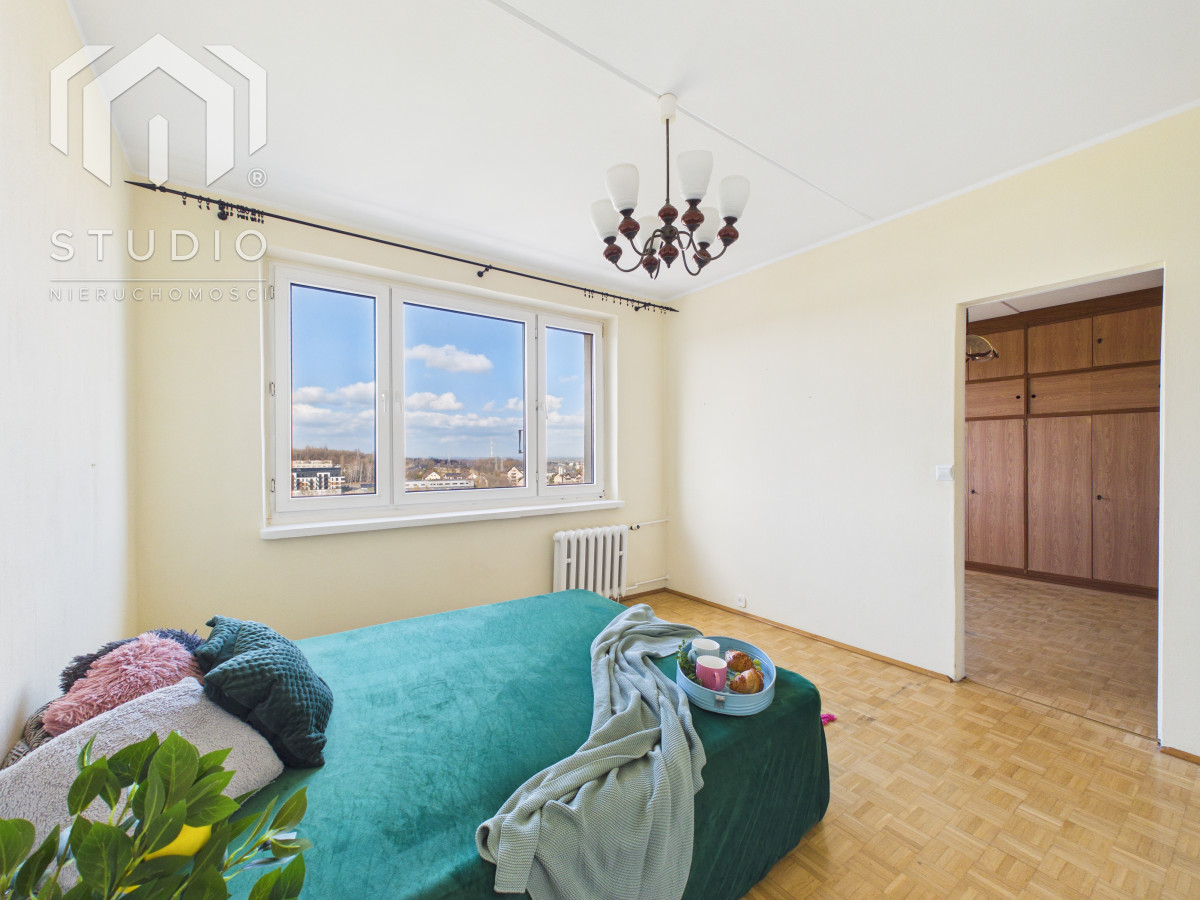 Lokal o powierzchni ok. 69 m² położony jest na siódmym piętrze 10-piętrowego budynku z windą. Mieszkanie wymaga remontu lub odświeżenia, co daje nowemu właścicielowi możliwość aranżacji wnętrza według własnych potrzeb. Okna PCV z ekspozycją północ-południe zapewniają bardzo dobre doświetlenie - mieszkanie jest jasne i słoneczne przez cały dzień. Z dużego balkonu rozpościera się piękny, panoramiczny widok na miasto oraz pasmo gór, który zachwyca o każdej porze dnia