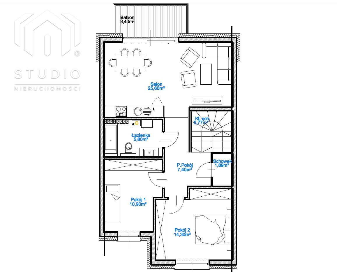 - Salon z jadalnią i aneksem kuchennym - 25,68 mkw.